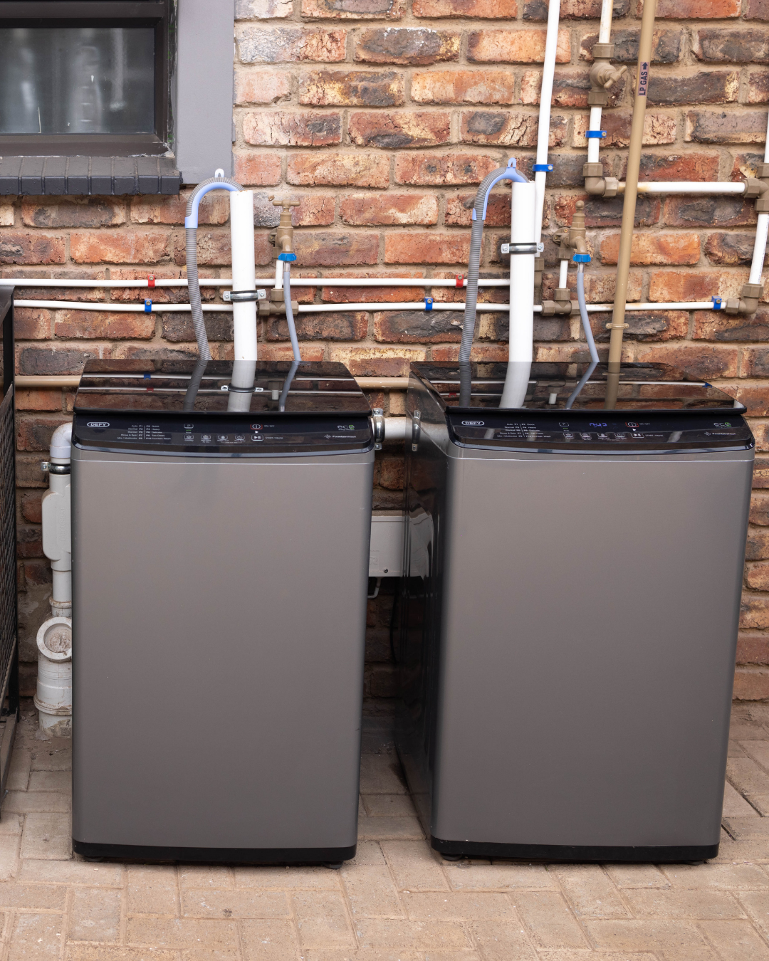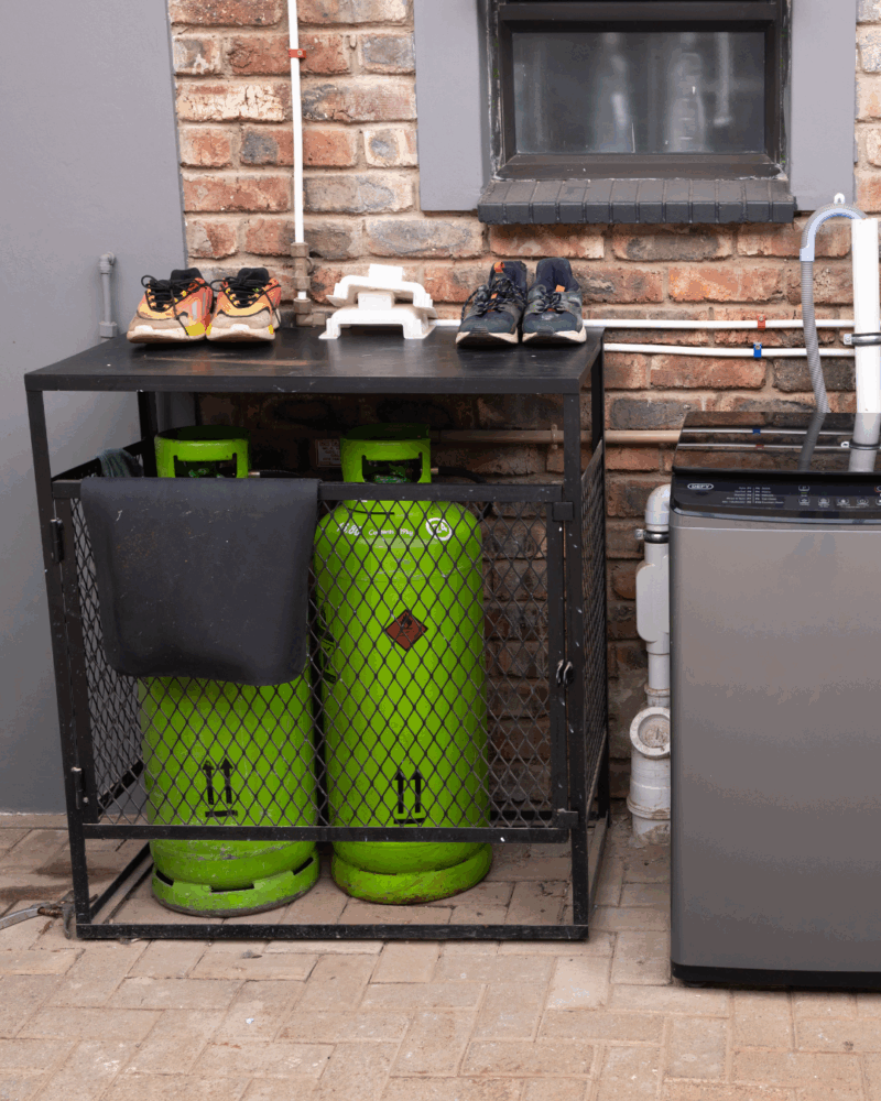 Gas geyser and water pump to ensure warm water during load shedding and additional water during shutdowns.